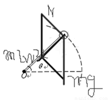 试题分析:小球绕杆在竖直平面内做匀速圆周运动,重力和杆的作用力合力提供向心力,某时刻杆对球的作用力恰好与杆垂直时受力分析图如下。根据力合成的几何关系可得