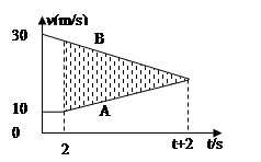 作v-t图如右,设A的加速度为aA,由题意可算出2秒末内A、B间的距离为: