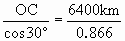 AO= 卫星距地面的高度: h=AB=AO-R=990km. |