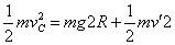| 小球在光滑圆轨道上滑行时,机械能守恒,设小球滑过C点时的速度为vC,通过甲环最高点速度为v′,根据小球对最高点压力为零,由圆周运动公式有 取轨道最低点为零势能点,由机械能守恒定律