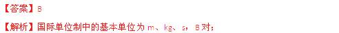 | A、米(m)、千克(kg)、秒(s) | B、米(m)、牛(N)、秒(s) | C、千克(kg)、焦耳(J)、秒(s) | D、米(m)、千克(kg)、牛(N) |