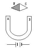 如图所示,当铁心AB上绕有一定阻值的线圈后,在AB间的小磁针静止时N极水平向左,试在图中铁心上的A、B两侧绕上线圈,并与电源连接成正确的电路.