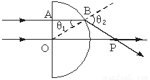 光路如图所示:其中一条光线沿直线穿过玻璃,可知O点为圆心;另一条光线沿直线进入玻璃,在半圆面上的入射点为B,入射角设为θ1,折射角设为θ2,则