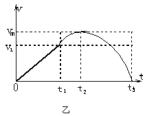 (3)从滑块静止释放瞬间开始计时,请在乙图中画出滑块在沿斜面向下运动的整个过程中速度与时间关系v-t图象。图中横坐标轴上的t1、t2及t3分别表示滑块第一次与弹簧上端接触、第一次速度达到最大值及第一次速度减为零的时刻,纵坐标轴上的v1为滑块在t1时刻的速度大小,vm是题中所指的物理量。(本小题不要求写出计算过程)