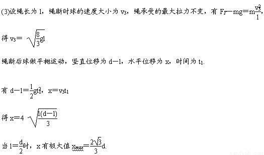 3.¸Ä±äÉþ³¤£¬Ê¹ÇòÖØ¸´ÉÏÊöÔ˶¯£¬ÈôÉþÈÔÔÚÇòÔ˶¯µ½×îµÍµãʱ¶Ïµô£¬ÒªÊ¹ÇòÅ׳öµÄˮƽ¾àÀë×î´ó£¬Éþ³¤Ó¦Îª¶àÉÙ£¿×î´óˮƽ¾àÀëΪ¶àÉÙ£¿