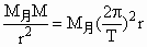 (1)根据万有引力定律和向心力公式: G mg=G 解(1)(2)得:r= (2)设月球表面处的重力加速度为g月,根据题意: V0=g月t/2 (4) (2分) g月=GM月/r2 (5) (2分) 解(4)(5)得:M月=2v0r2/Gt (6) (2分) |