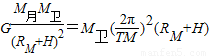 【答案】分析:(1)卫星绕月做圆周运动时,由月球的万有引力提供向心力,知道距月球表面高为H,月球半径为RM,绕行的周期为TM,根据由牛顿第二定律可求出月球的质量.月球绕地球公转时,由地球的万有引力提供向心力,由月球公转的周期为TE,半径为R.地球半径为RE,根据由牛顿第二定律可求出地球的质量.
