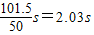 2.00cm=102.00cm=1.02m,单摆的周期T=