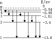 答案:12.75 Mev 解析:首先弄清2.55 ev的能量是从哪一能级跃迁到n=2能级上的,-3.4 ev+2.55 ev=-0.85 ev,由能级图可知,是从n=5能级跃迁的,对处于基态的氢原子所需吸收的能量E=-0.85 ev-(-13.6 ev)=12.75 ev,获得这一能量后,氢原子处于n=5能级,它向较低能级的跃迁如图示所示.