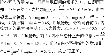 前3 s内小环机械能的增加量是5.75 J