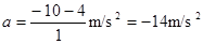 m/s,全过程时间t=1 s,加速度公式即得