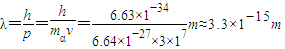 已知α粒子的质量mα=6.64×10-27kg,速度v=3×107m/s,普朗克常量h=6.63×10-34J?s,要观察到α粒子明显的衍射现象,障碍物的尺寸约为( )A.3.3×10-10m