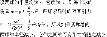 有两个大小不一样、由同种材料组成的均匀球体靠在一起,它们之间的万有引力为F,若用上述材料制成两个半径更小的靠在一起的均匀球体,它们间的万有引力将