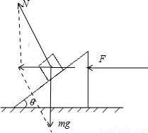 【答案】分析:先对滑块受力分析,然后根据牛顿第二定律并运用合成法求出加速度;再对整体受力分析,根据牛顿第二定律求解出推力F.