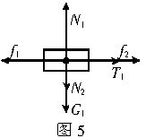 物块E所受的力有地球对物块E的重力G1、地面对物块E的支持力N1、人对物块E的压力N2、绳对物块E的拉力T1、地面对物块E的摩擦力f1、人对物块E的摩擦力f2(f2是E对人的摩擦力f的反作用力,所以方向必向右).如图5所示.