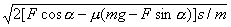 如图所示,用拉力F使一质量为m的木箱由静止开始在水平冰道上移动了一段位移s,拉力与木箱前进方向的夹角为a,木箱与冰道间的动摩擦因数为μ.则木箱的速度为________.![]()