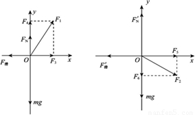 将F1正交分解为F3和F4,F2正交分解为F5和F6,
