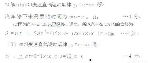 (3) 如果必须在10s内停下来,则该汽车的行驶速度最大不能超过多少?