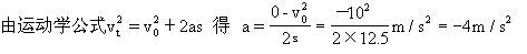 kg的小汽车正以10m/s的速度行驶,现在让它在12.5m的距离内匀减速地停下来,求所需的阻力。