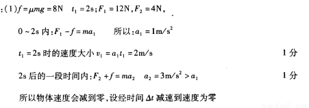 一个质量为4kg的物体静止在足够大的水平地面上,物体与地面间的动摩擦因数μ=0 2。从t=0开始,物体受到一个大小和方向呈周期性变化的水平力F作用,力F随时间t的变化规律如图所示。g取10m/s2。求