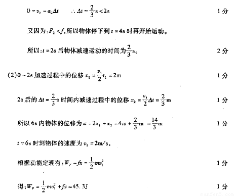 1.在2s~4s时间内,物体从减速运动到停止不动所经历的时间;