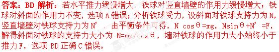 £¬ÍÆÁ¦FµÄ×÷ÓÃÏßͨ¹ýÇòÐÄO£¬ÈçͼËùʾ£¬¼ÙÉèÐ±Ãæ¡¢Ç½±Ú¾ù¹â»¬¡£ÈôË®Æ½ÍÆÁ¦»ºÂýÔö´ó£¬ÔòÔڴ˹ý³ÌÖУº