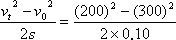 答案:2.5×103 N,方向与初速度方向相反. 解析:以子弹为研究对象,取初速度v0的方向为正方向,依题意,有v0=300 m/s,vt=200 m/s,s=10 cm=0.10 m,m=10 g=10×10-3 kg. 子弹穿过木板的运动可看做匀减速直线运动,设加速度为a,由公式vt2-v02=2as,得a= 设木块对子弹的平均作用力为F,据牛顿第二定律,有: F=ma=10×10-3×(-2.5×105)N=-2.5×103 N,负号表示平均阻力与初速度方向相反. |
