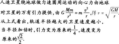 根据上述B和C中给出的公式,可知卫星运行的线速度将减小到原来的![]()