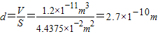 (3)把油酸分子看成球形,且不考虑分子间的空隙,因此其直径为: