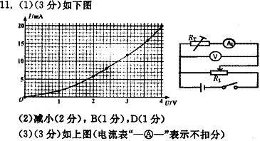 | 电流I(mA) | 0.0 | 1.6 | 5.8 | 8.0 | 11.8 | 16.0 | 20.0 |