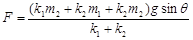 加上推力后,当两弹簧的总长度等于两弹簧原长之和时,k1的伸长量与k2的压缩量均为x,对m1受力分析可得: