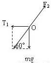 当力F最大时,OB绳松驰,张力为零,此时小球受到三个力如图,根据平衡条件得