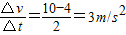 解答:解:当末速度与初速度方向相同时,v=4m/s,v=10m/s,t=2s,则加速度a=