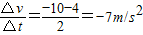 当末速度与初速度方向相反时,v=4m/s,v=-10m/s,t=2s,则加速度a=