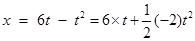 一辆汽车刹车后的位移x与时间t的关系为x =" 6t" - t2(各物理量均采用国际单位制单位)则该汽车的初速度为 ,加速度为 ,4s末的位移为 。