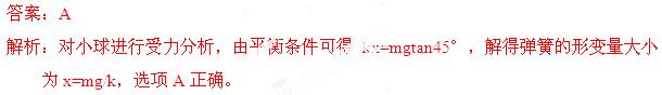(2013安徽模拟)右图为一位于墙角的光滑斜面,其倾角为45°,劲度系数为k的轻质弹簧一端系在质量为m的小球上,另一端固定在墙上,弹簧水平放置,小球在斜面上静止时,则弹簧的形变量大小为