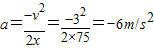 汽车刹车为末速度为零的匀减速直线运动,根据速度位移公式,有