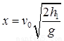 考虑h1高度的水平射程为X