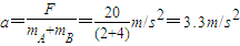 解答:解:(1)设力F作用时A、B相对静止地一起运动,
