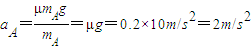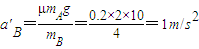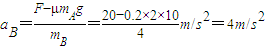 对于B:根据牛顿第二运动定律有 F-μmAg=mBaB
