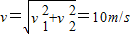 南北方向速度:v2=a′t=4×2=8m/s;