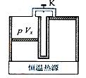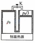 如图,两个侧壁绝热、顶部和底部都导热的相同气缸直立放置,气缸底部和顶部均有细管连通,顶部的细管带有阀门K.两气缸的容积均为V0气缸中各有一个绝热活塞(质量不同,厚度可忽略)。开始时K关闭,两活塞下方和右活塞上方充有气体(可视为理想气体),压强分别为Po和Po/3;左活塞在气缸正中间,其上方为真空; 右活塞上方气体体积为V0/4。现使气缸底与一恒温热源接触,平衡后左活塞升至气缸顶部,且与顶部刚好没有接触;然后打开K,经过一段时间,重新达到平衡。已知外界温度为To,不计活塞与气缸壁间的摩擦。求: