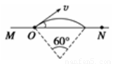 (10分)如图所示,直线MN上方为磁感应强度为B的足够大的匀强磁场.一电子(质量为m、电荷量为e)以v的速度从点O与MN成30°角的方向射入磁场中,求: