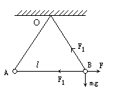 二条长3l的丝线分别穿着两个相同的质量均为m的小金属环A和B,将两条线的另一端都系于同一点O(见下图),当金属环带电后,由于两环间的静电斥力使丝线构成一等边三角形,此时两环处于同一水平线上,如果不计环与线的摩擦,两环各带多少电量?