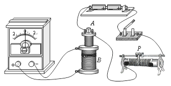 解析试题分析:(1)通过对电路分析可知:线圈B是用来检测感应电流的,故电流计要和B构成闭合回路;滑线变阻器的作用是用来改变A线圈电流大小,故要采取分流接法,综上所述,连线如图。