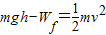 D、除重力外,只有阻力对物体做功,所以物体的机械能减少了