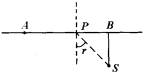 试题分析:这是一个运动学问题,但与光的折射现象有相似之处,发现者为了尽快到达S处,假设他从P处下水.(BP=x),就相当于入射光的入射角为i=90°,sini/sinr=