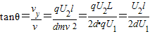 【答案】分析:电子在加速电场中,在电场力的作用下,做匀加速直线运动,可由电场力做功求出射出加速电场是的速度.电子在水平放置的平行板之间,因受到的电场力的方向与初速度的方向垂直,故电子做类平抛运动.运用平抛运动的竖直方向的速度与水平方向的速度的关系,可求出角度θ的变化情况.