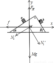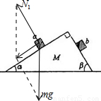 同理,物体b对斜面体的压力为N2′=mgcosβ ②