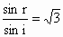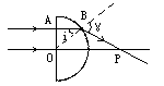 解 作出光束通过透镜的光路图,如图,其中一条光线沿直线穿过透镜,可知O点为圆心,另一条光线沿直线进入透镜,在半圆面上入射点为B,设入射角为i,折射角为r